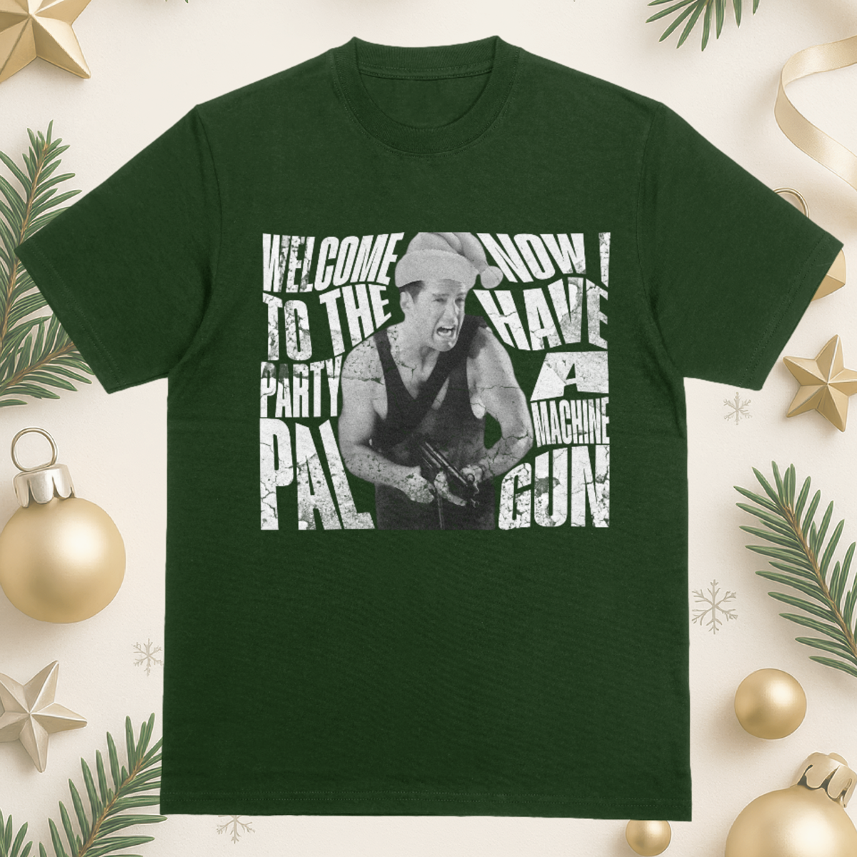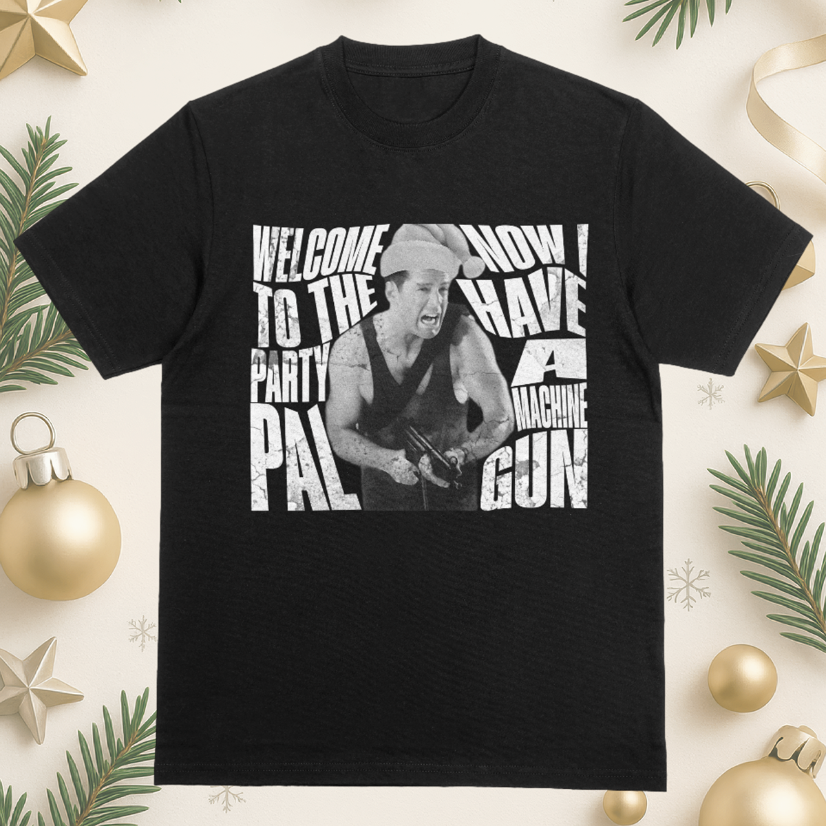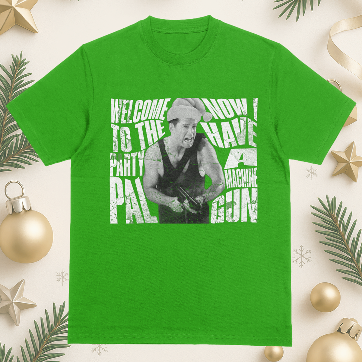 Featuring the cheeky phrase “Now I have a machine gun” in bold type, this shirt is equal parts nostalgic and rebellious — great for fans of tough heroes, witty one-liners, and chaotic Christmas spirit.