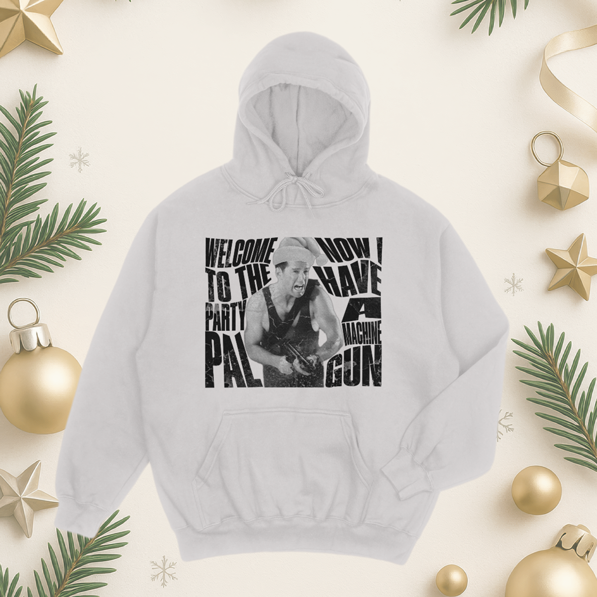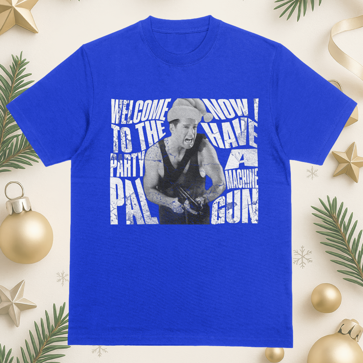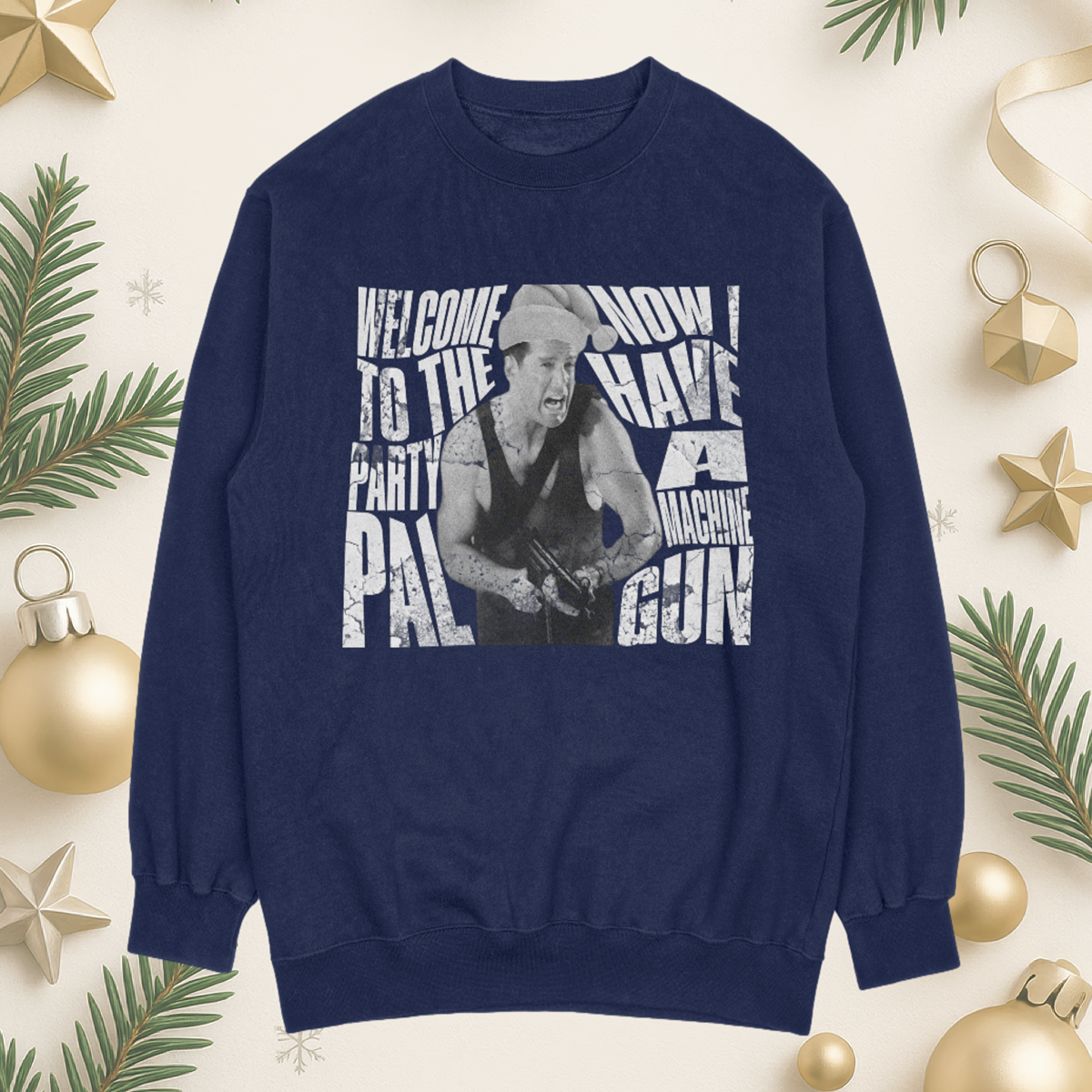 Featuring the cheeky phrase “Now I have a machine gun” in bold type, this shirt is equal parts nostalgic and rebellious — great for fans of tough heroes, witty one-liners, and chaotic Christmas spirit.